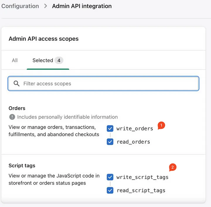 Give *Read* and *Write* permission to Orders and Scripts, then click *Save*.
