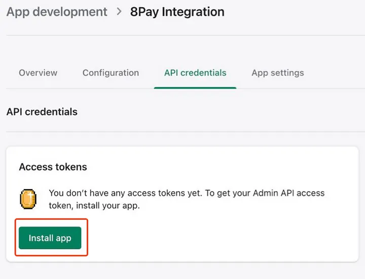 Go to the API credentials tab and press *Install App*.