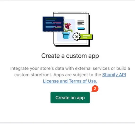 1. **Go to your Shopify "Apps", click "Develop Apps", and "Create an App".**